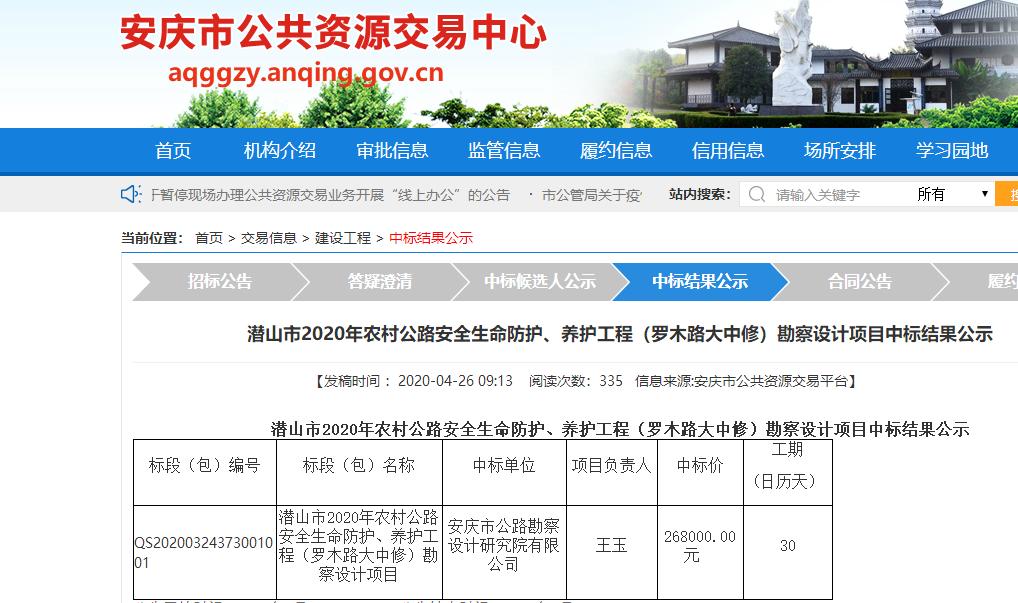 公司中標(biāo)潛山市2020年農(nóng)村公路安全生命防護、養(yǎng)護工程(羅木路大中修)勘察設(shè)計項目