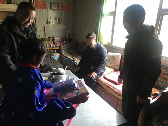 捐贈儀式結(jié)束后,在色達縣委副書記桂志敬和學校老師的陪同下,王海臣一行走訪了貧困學生家庭,與學生家長親切交談,實地了解他們的生活情況,并將書包、字典、文具等用品送到孩子手中。